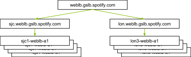One of the primary use cases for the Spotify perimeter is to enable incoming access to HTTP based services. We are using dyn.com to solve 2 problems: how to direct our clients to the pool of the load balancers in the closest datacenter and how to remove dead servers based on health checks from different locations.