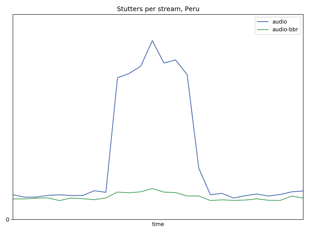 In Peru, the non-BBR group saw a 400-500% increase in stutter. In the BBR group, stutter only increased 30-50%.